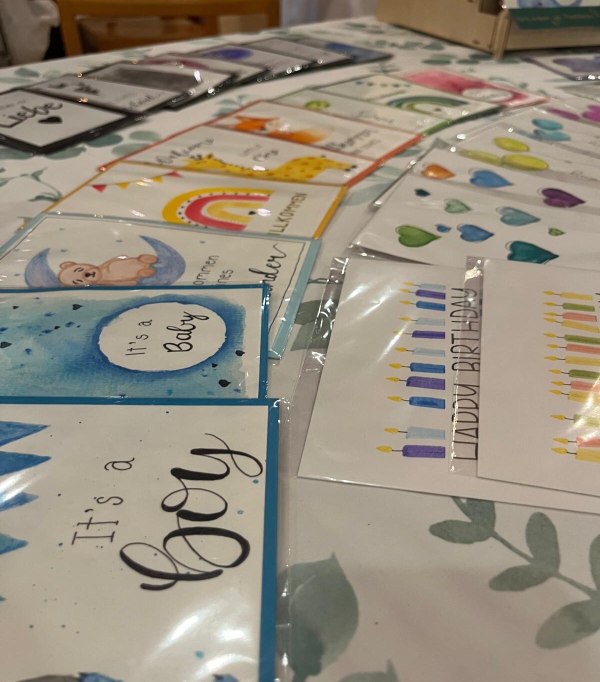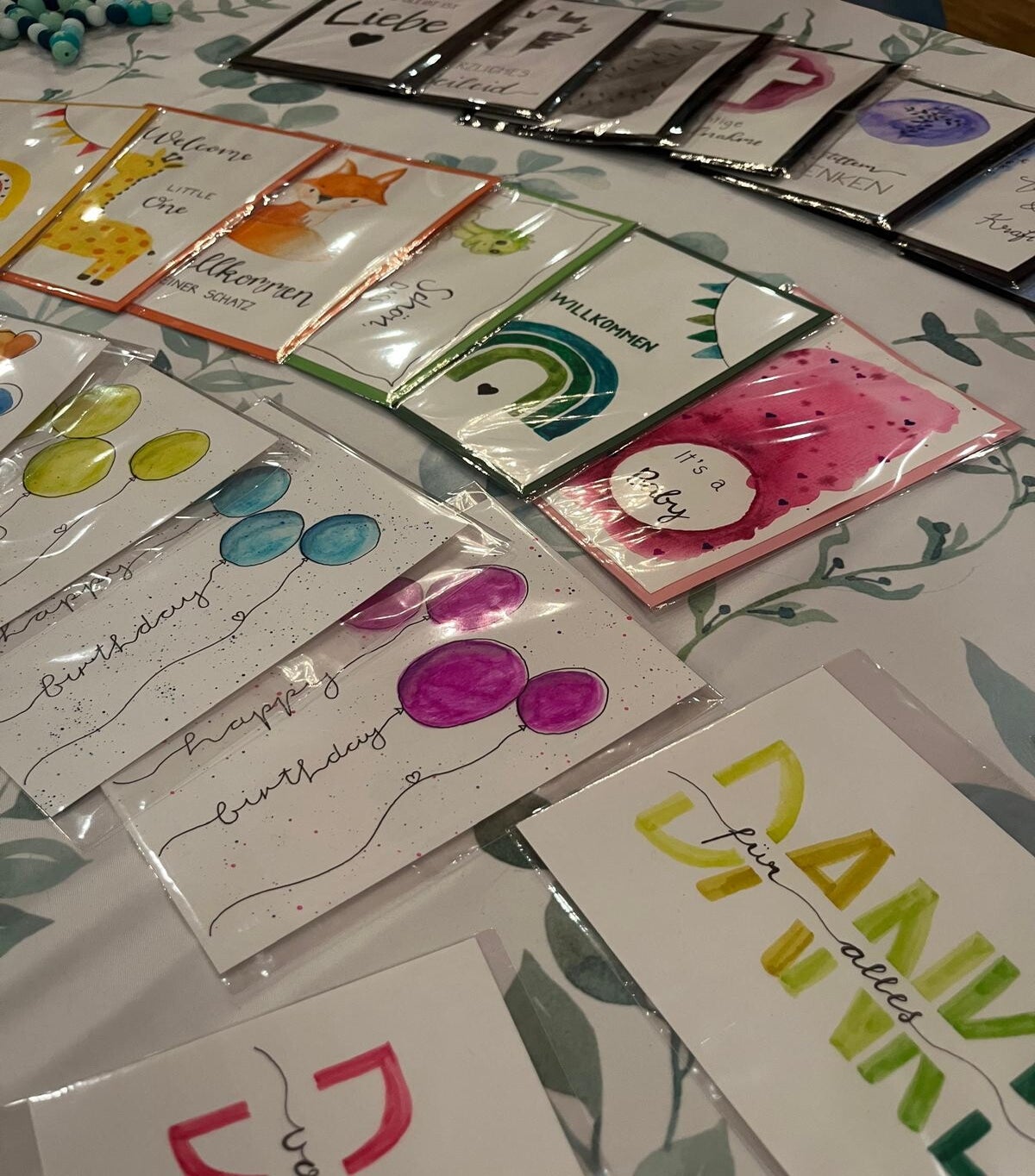 Entdecken Sie unsere liebevoll handgemalten Glückwunschkarten – jede einzelne ein kleines Kunstwerk! Ob zur Geburt, Taufe oder als herzlicher Glückwunsch für frischgebackene Eltern – diese einzigartigen Karten werden mit viel Sorgfalt und Kreativität gestaltet. Zarte Aquarelle, süße Motive und hochwertige Materialien machen jede Karte zu etwas ganz Besonderem.